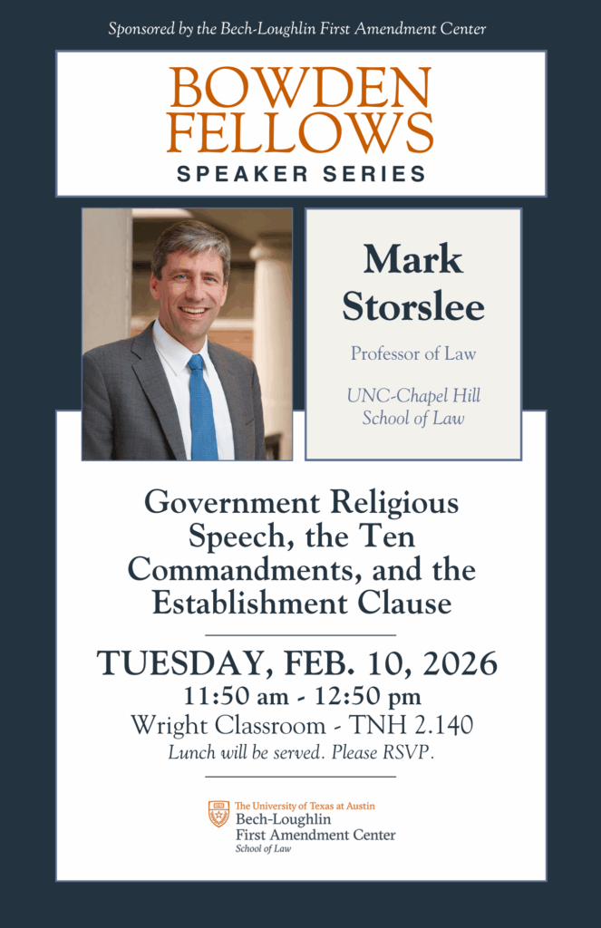 Recently, several states have passed laws requiring display of the Ten Commandments in public-school classrooms. Professor Mark Storslee (UNC-Chapel Hill Law) will explore the debate over these laws, their similarities and differences, and what the puzzle might tell us about the meaning of the Establishment Clause and the Supreme Court’s evolving Religion Clause jurisprudence.