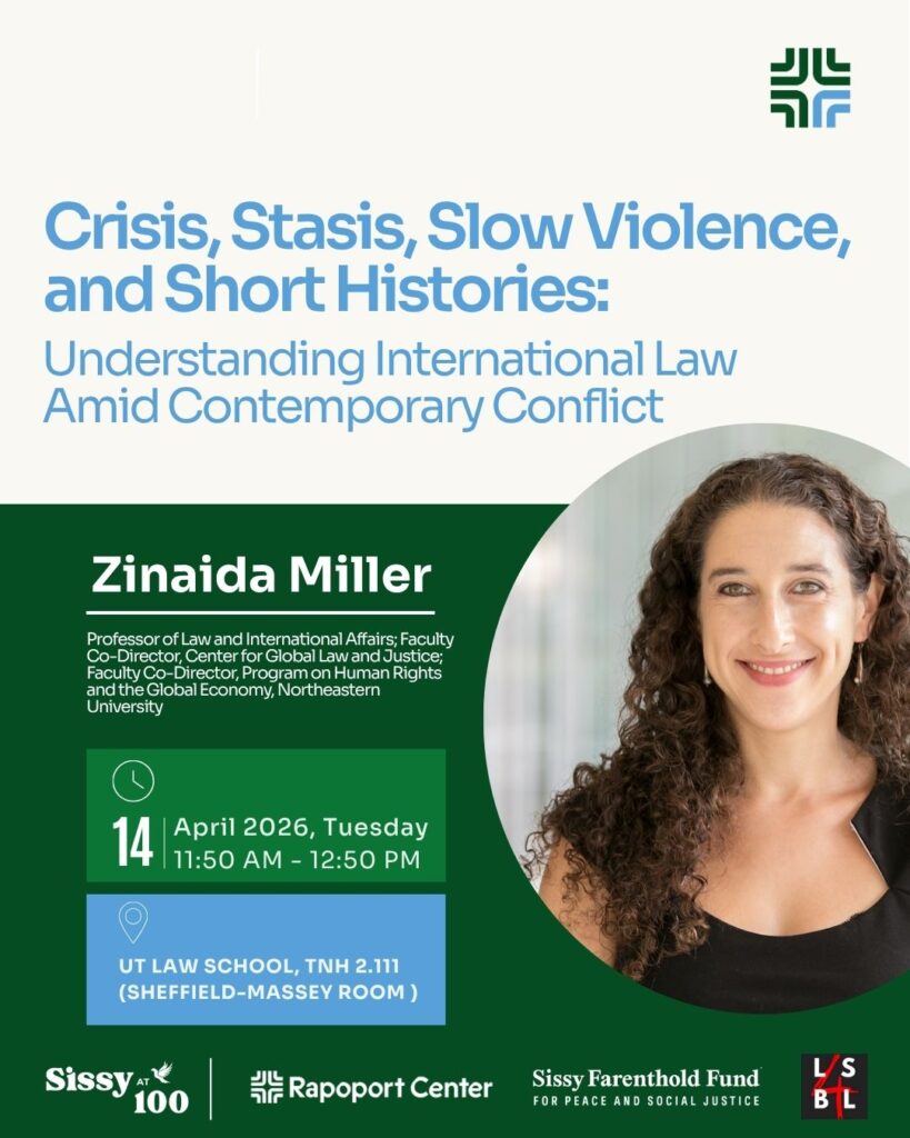 Join us for a conversation and Q&A about the role of international law in conflicts ranging from Iran to Venezuela with Professor Zinaida Miller (Northeastern University School of Law), a scholar of international law, human rights, and transitional justice. She will focus in particular on the pasts of slow violence that continue to animate today’s conflicts.