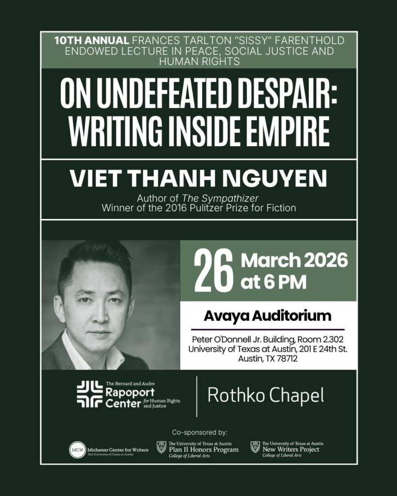 Viet Thanh Nguyen: “On Undefeated Despair: Writing Inside Empire” — 10th Annual Sissy Farenthold Endowed Lecture