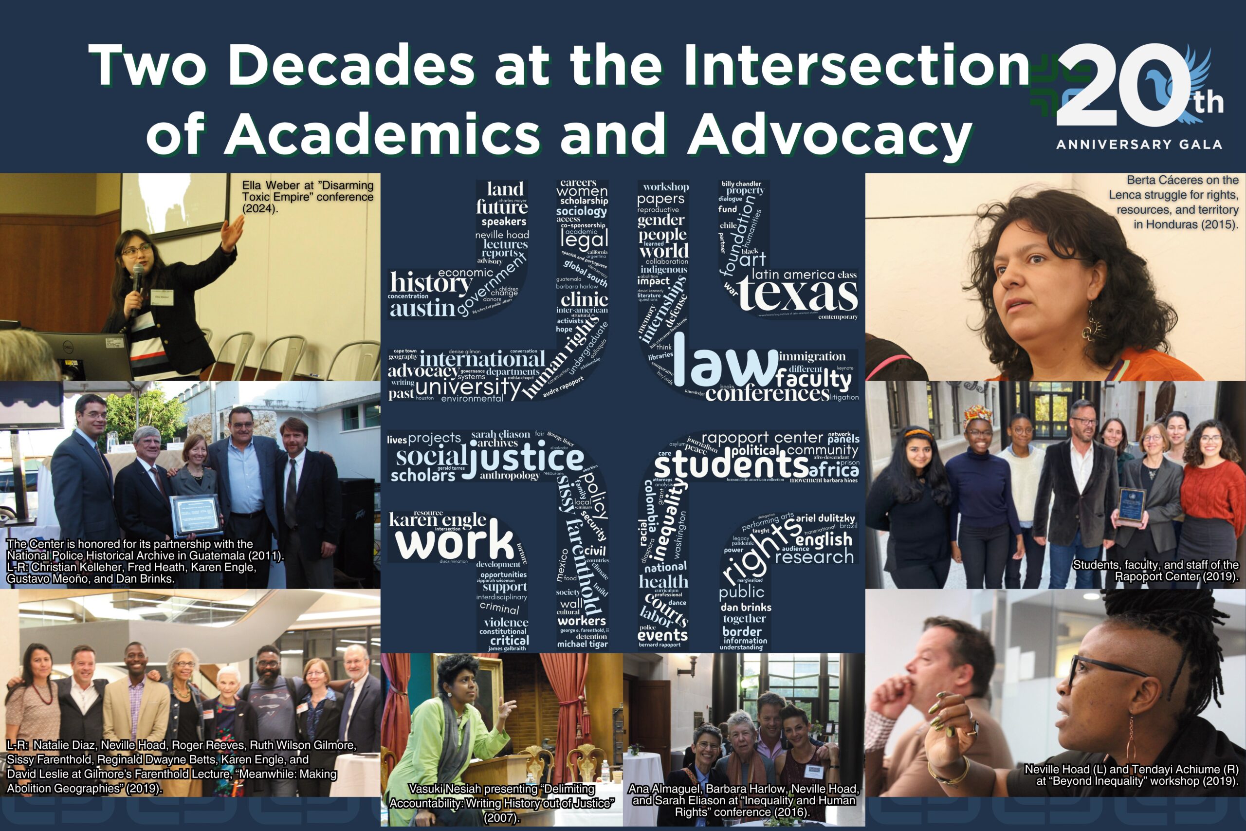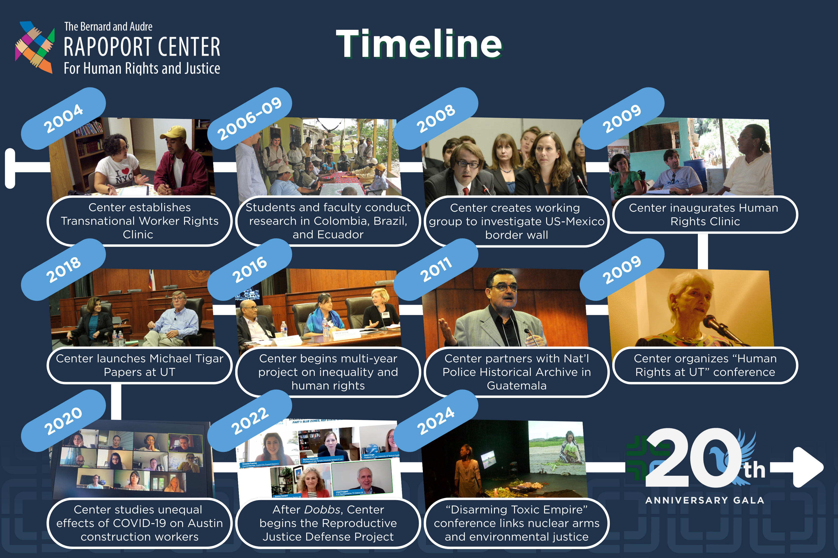 To commemorate the 20th anniversary of the founding of the Bernard and Audre Rapoport Center for Human Rights and Justice and the 10th anniversary of the launch of the digital exhibition on Frances Tarlton “Sissy” Farenthold, Rapoport Center students and staff created physical exhibits of the Center’s past, including exhibits reflecting on the impact of Bernard and Audre Rapoport and Sissy Farenthold on the Center’s programming, projects, and priorities.